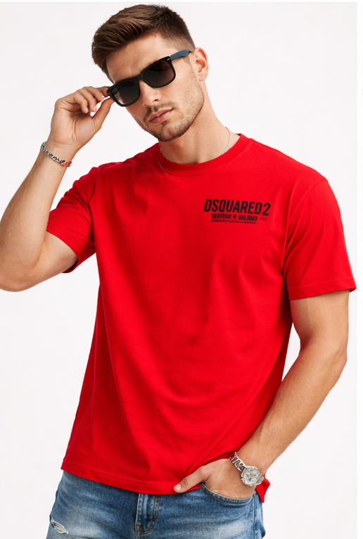 Aggiungi un tocco di carattere al tuo look quotidiano con questa t-shirt da uomo in cotone, dal design essenziale e contemporaneo. Il colore rosso intenso valorizza qualsiasi outfit, mentre la stampa frontale in nero dona un contrasto deciso e moderno.
